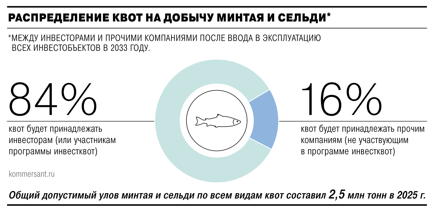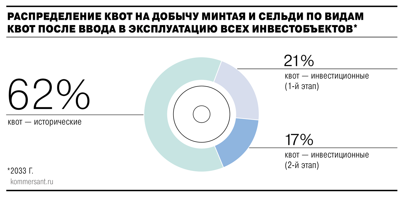 Инвестиционные квоты обеспечивают не более 50% от производственной мощности строящихся судов и заводов. Например, на крупнотоннажное судно длиной свыше 105 м (судно типа А), которое может добыть около 60 тыс. тонн минтая и сельди ежегодно, выделяется квота на добычу не более 25 тыс. тонн рыбы. Остальной объем рыбопромысловые компании-инвесторы могут добрать только за счет исторических квот, которые были распределены в 2018 году на 15 лет, обеспечивая гарантии для реализации долгосрочных инвестиционных проектов. На сегодняшний день 100% компаний-инвесторов являются также держателями исторических квот.